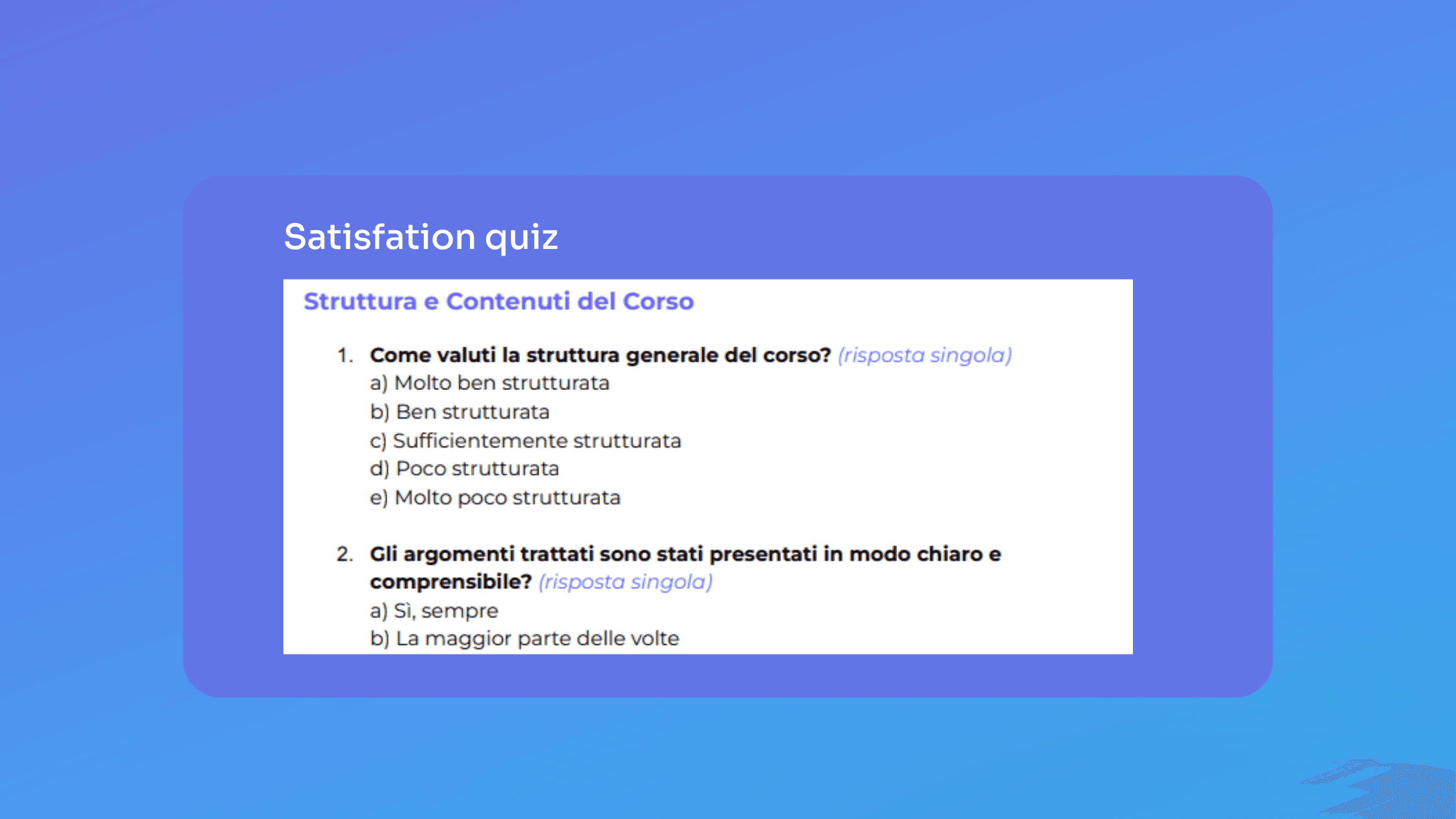 Fare formazione oggi vuol dire poter utilizzare la tecnologia come strumento di accessibilità. L’apprendimento diventa quindi flessibile e alla portata di tutti. Per garantire, però, un’esperienza formativa realmente efficace è fondamentale capire le necessità e i pensieri dei discenti. I questionari di gradimento, ad esempio, possono essere un mezzo estremamente prezioso per valutare la qualità dei corsi se proposti nei modi e nei tempi corretti.