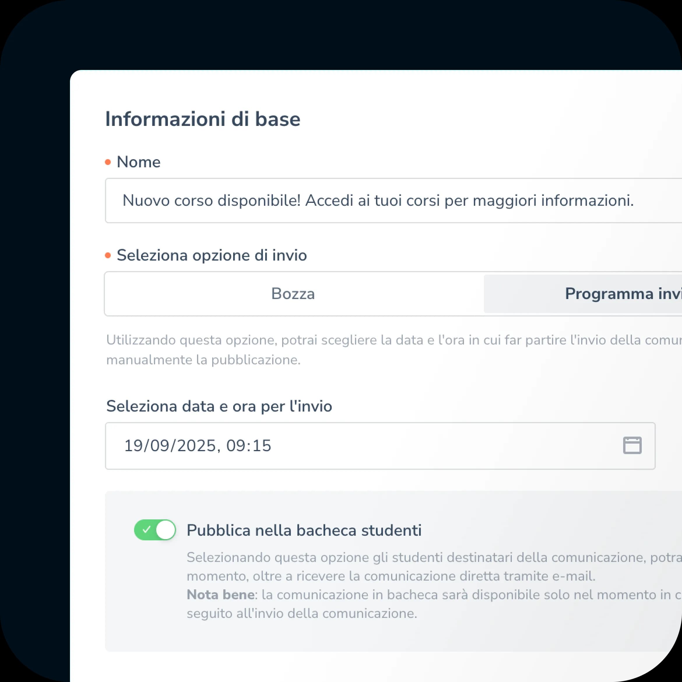 Gli amministratori possono creare comunicazioni personalizzandone ogni aspetto.